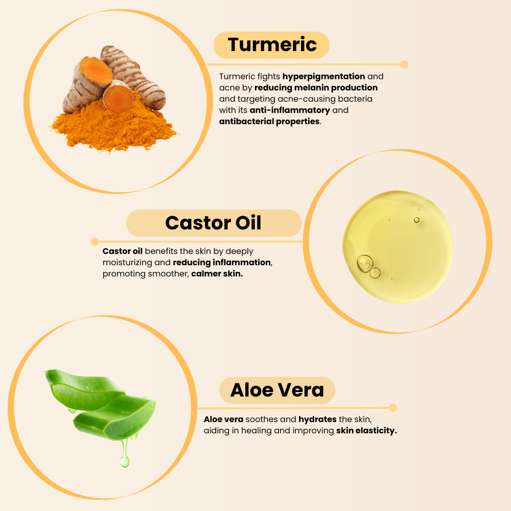 our unique turmeric-based formula effectively eliminates all your skin problems.